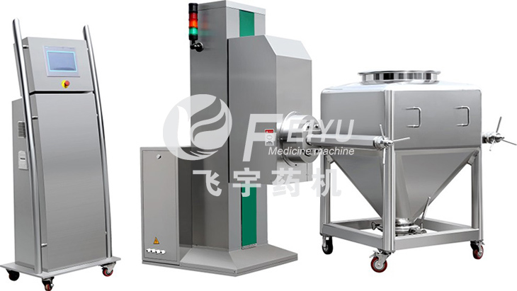 回轉(zhuǎn)體(混合料斗)與回轉(zhuǎn)軸線成30°夾角,混合料斗中的物料隨回轉(zhuǎn)體翻動外,同時(shí)沿斗壁做切向運(yùn)動,產(chǎn)生強(qiáng)烈的翻轉(zhuǎn)和高速的切向運(yùn)動,從而達(dá)到最佳的混合效果,采用PLC全自動控制,并設(shè)置紅外線安全裝置及防誤操作裝置的出料碟閥,確保生產(chǎn)安全。物料可在同一容器中通過不同的工序段,不需要頻繁地轉(zhuǎn)料、加料等程序。有效地控制粉塵與交叉污染,減少物料的損失,控制物料的分層,優(yōu)化了生產(chǎn)工藝,完全符合藥品生產(chǎn)的GMP要求。