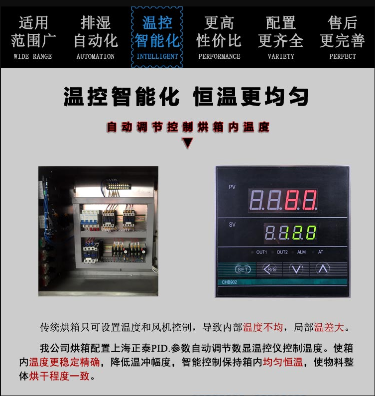 c、烘箱運轉平穩(wěn),自動控溫報警提醒,安裝維修方便。